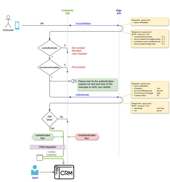 Flow diagram for basic IVR integration of IDgo.